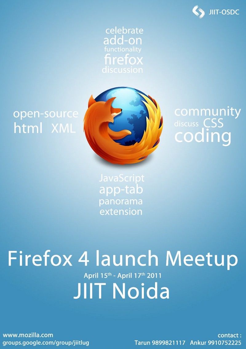 JIIT OSDC hadn’t organized an event since a very long time. So the members really wanted to do something new. Around this time, Firefox 4 was also launched. So, the members decided to celebrate the launch of Firefox 4 in the college. We were not the only ones doing this. Communities from all over the world were going to have a launch party as Mozilla openly invited anyone to go ahead and celebrate the launch of Firefox 4 in their community or organization. Therefore, our event became an official event of Mozilla. It also became our college’s (JIIT) official event as the Computer Science department was positive about it and was ready to support.